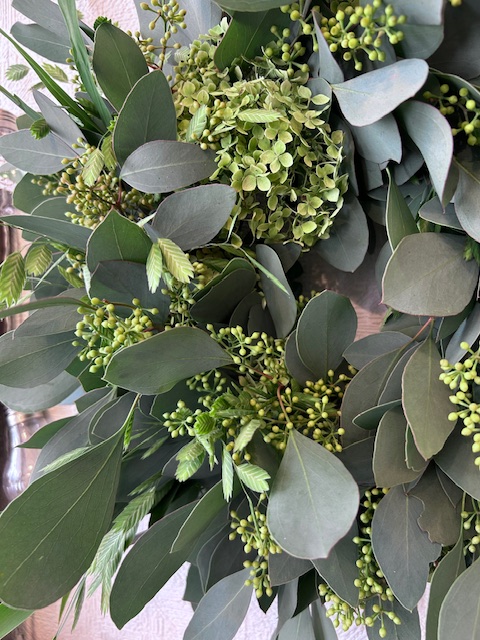 今回はアナベルにシルバーのユーカリを合わせてシンプルに。